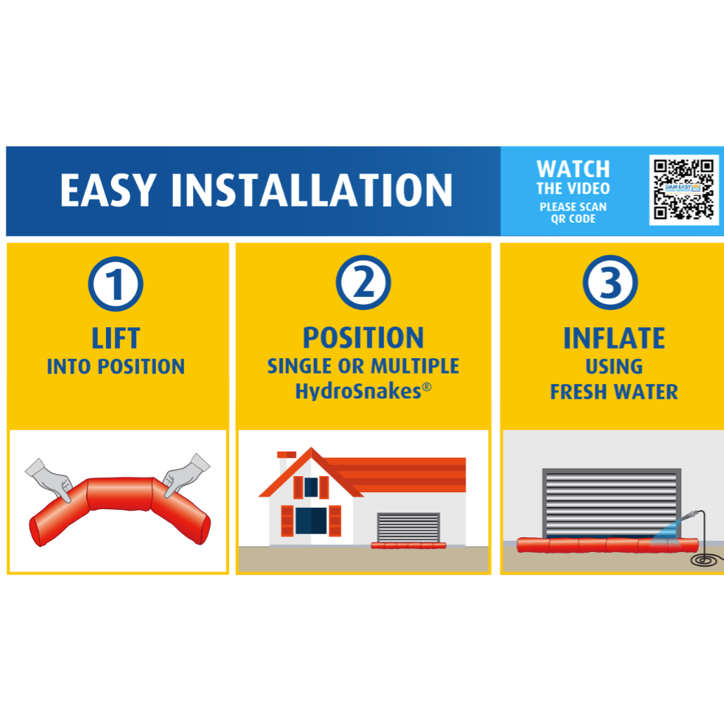 Durch das Design passt sich der Hydro Snake in jeder Öffnung an. Egal, ob Sie Hochwasserschutz für Gragen, Türen oder Hochwasserschutz für Fenster benötigen.