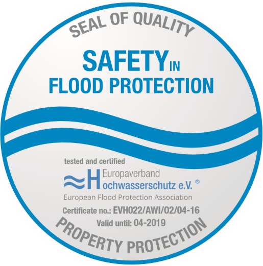 Und das sogar mit Zertifikat des anerkannten Europaverband Hochwasserschutz e.V in Zusammenarbeit mit dem deutschen TÜV.